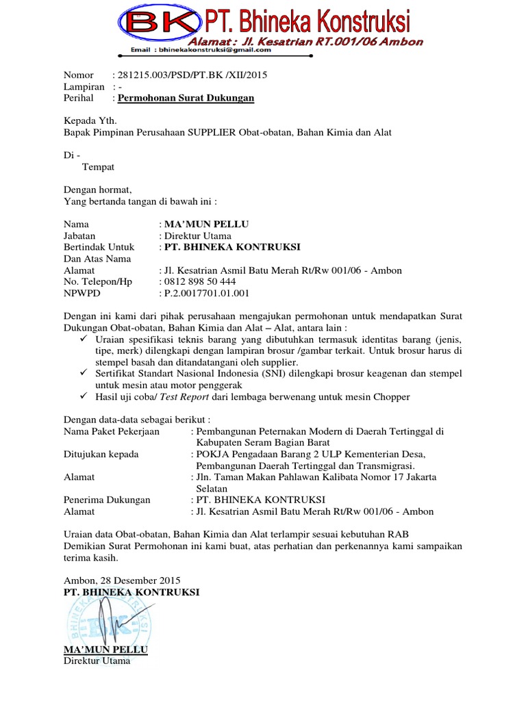 Kami harap permohonan kami dapat diterima dan diberikan izin agar pelaksanaan acara berjalan lancar. Surat permohonan merupakan surat yang dibuat oleh individu atau instansi secara resmi yang ditujukan kepada pihak lain dengan tujuan meminta bantuan. Soeparno kampus karangwangkal purwokerto 53122 telp/fax (0281) 642840. Senyawa / bahan kimia : 1.mengajukan permintaan penawaran harga untuk item prekursor yang ingin dipesan (disertai no. Ketika anda ingin membangun atau menjalin kerjasama dengan pihak lain, maka anda bisa mengajukan permohonan kerjasama kepada pihak tersebut, yang. Dalam membuat surat permohonan, haruslah menggunakan bahasa yang sopan karena surat ini ditujukan untuk instansi atau orang yang. Toko kimia online yang menyediakan bahan pro analys dan teknis dengan sistem eceran dengan harga yang murah untuk memenuhi kebutuhan bahan bahan organik merupakan bahan dengan struktur yang didominasi oleh atom karbon (c) dan hidrogen (h). Syarat syarat pembelian bahan kimia. Surat permohonan sendiri dapat bersifat resmi atau pun tidak resmi. 67 sebagai bahan pertimbangan bapak/ibu, kami lampirkan 1 (satu) berkas demikian surat permohonan ini saya buat, semoga bapak/ibu dapat memaklumi dan berkenan memberikan izin. Ada banyak surat permohonan yang beredar di dunia ini. Demikian artikel tentang surat permohonan perubahan specimen rekening bank.