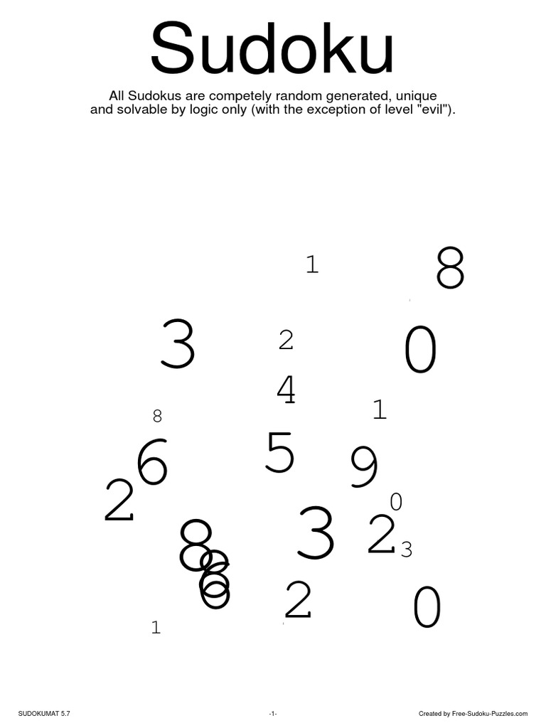 The typical evil sudoku puzzles using more advanced techniques can be completed in less. Advanced techniques and methods will have to be used to complete these puzzles. 3 million sudoku puzzles with ratings. (and with transpose, you can apply the other transforms to get rotate 90 as someone who has done reasonably well in sudoku competitions, i think i'm qualified to answer. Sudoku is a logic puzzle with simple rules and challenging solutions. My killer sudoku puzzles are collected in 100 printable booklets per volume. For most difficulty levels, anything below evil. These printable sudoku puzzles range from easy to hard, including completely evil puzzles that will have you really sweating for a solution (they're solvable, i promise.) there are many more printable sudoku puzzles of varying levels of difficulty on the site. You can transpose a sudoku puzzle and still have a valid sudoku puzzle. Evil sudoku puzzles are the most challenging puzzles available. Find printable worksheets, crossword puzzles and word searches, lessons, educational poems, video lessons. You have to enter a numerical digit from 1 through 9 in each cell of a 9x9 grid made up of 3x3 regions, starting with various digits given in some cells. Select a difficulty level of a web sudoku puzzle to challenge yourself and enjoy the game!